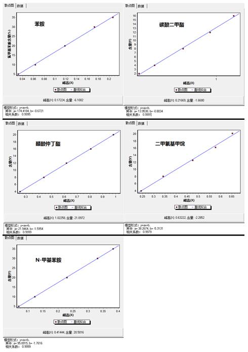 2.5 各物質(zhì)校正曲線及識(shí)別結(jié)果
