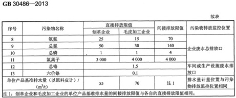 國家針對皮革工業(yè)重金屬的主要污染狀況,已經(jīng)頒布了《制革及皮毛加工工業(yè)水污染物排放標準》(GB30486-2013)。