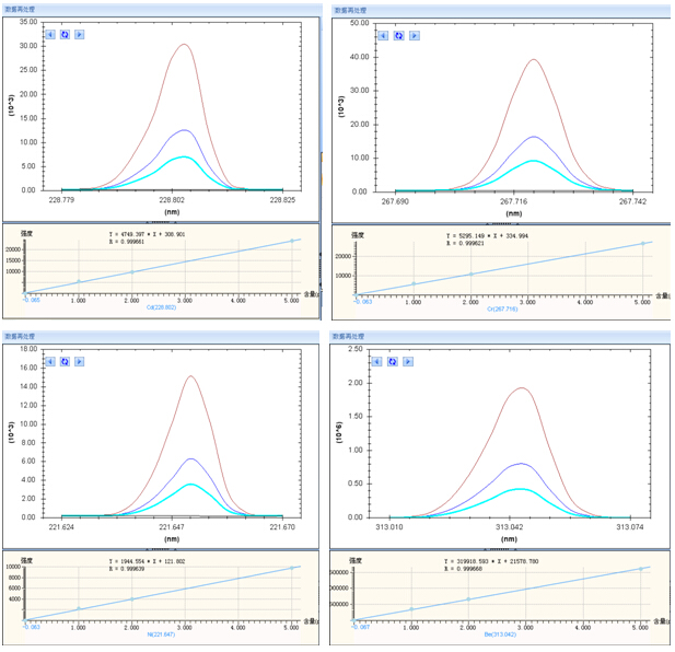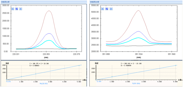 在 ICP-AES正常運(yùn)行后,將樣品溶液通過(guò)進(jìn)樣系統(tǒng)引入到電感耦合等離子體中,分析波長(zhǎng)測(cè)定各元素的光譜強(qiáng)度。