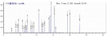 標樣及處理后的樣品在ESI+離子模式下進行分析,標準品質(zhì)譜圖如下。