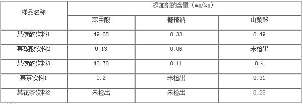 采用上述法測試部分碳酸飲料及茶飲料1結(jié)果如下表10所示。