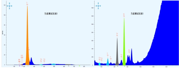圖3為測試中使用的一個未知樣(命名石油焦1#)的測試譜圖,在譜圖中可以明顯觀察到S、V、Fe、Ni元素的特征峰,并且在此樣品中還含有微量的Al、Si、Ca、Zn元素。使用該樣品進行重復(fù)性測試后,檢測結(jié)果中S、V、Fe、Ni元素的重復(fù)性分別達到了0.28%、3.33%、1.10%和0.71%,表明該儀器對石油焦樣品具有很好的檢測效果。