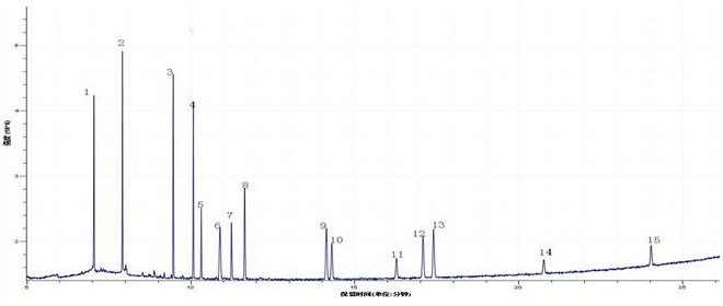 3.2 15種鄰苯二甲酸酯類物質(zhì)混合標準溶液總離子流監(jiān)測圖(TIC):