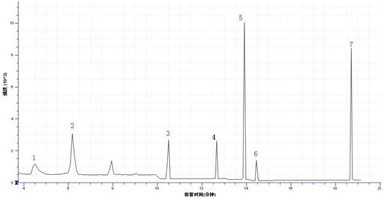 4.2 7種有機錫標準混合溶液衍生物總離子流監(jiān)測圖(TIC):