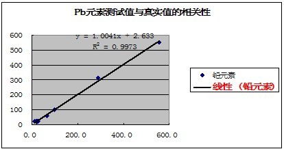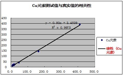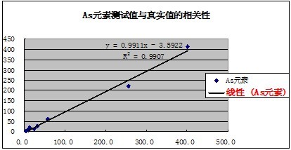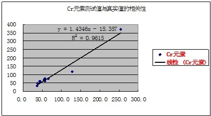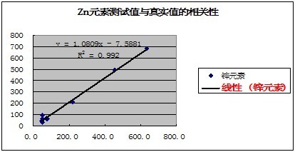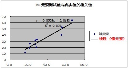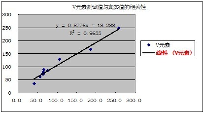 有關(guān)元素的測試值與真實(shí)值的相關(guān)性如下表示: