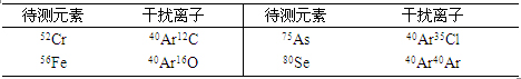 ICP-MS中質(zhì)譜干擾主要為多原子離子干擾,通??刹捎脭?shù)學(xué)干擾校正方程進(jìn)行校正或采用碰撞反應(yīng)功能,消除多原子干擾離子。碰撞反應(yīng)功能是指在質(zhì)譜儀內(nèi)引入碰撞反應(yīng)氣體,使某些多原子干擾離子發(fā)生解離、轉(zhuǎn)移等反應(yīng),降低干擾離子對(duì)待測(cè)同位素的影響。
